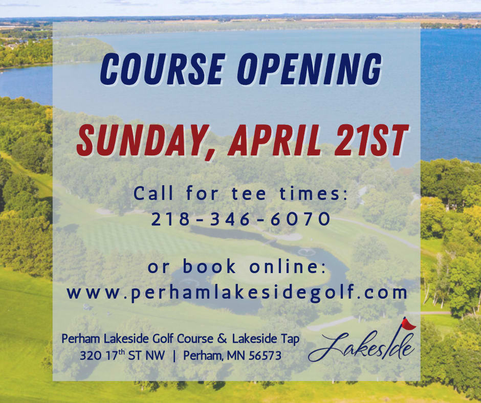 Call for tee times: 218-346-6070 or book online: www.perhamlakesidegolf.com